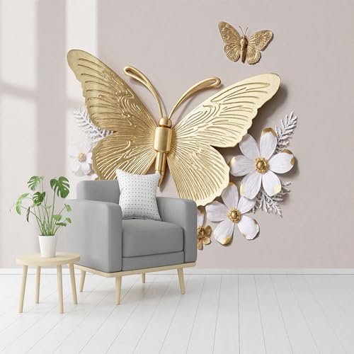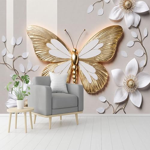 Papier peint mural de taille personnalisée, motif papillon doré et fleur blanche, papier peint autocollant amovible à décoller et à coller, pour salon, chambre, magasin, bureau, enfants