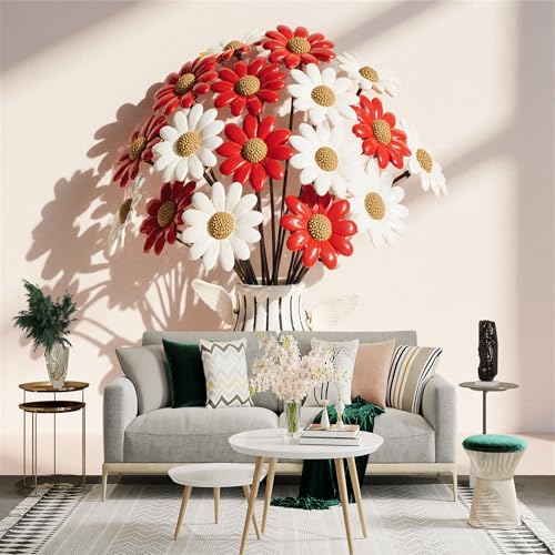 Autocollant mural de taille personnalisée, vase de marguerites rouges et blanches, papier peint autocollant amovible pour salon, chambre à coucher