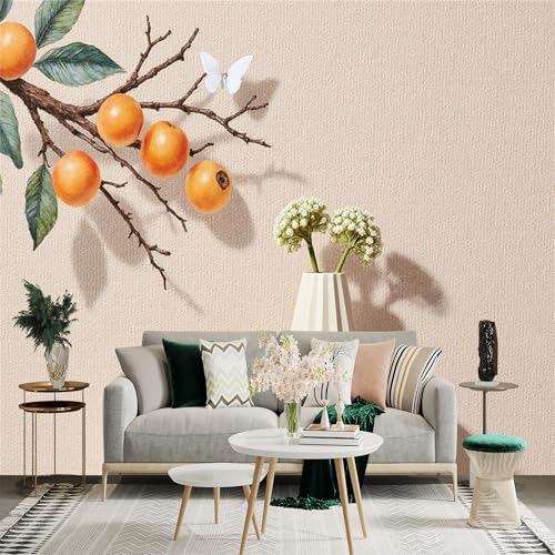 Autocollant mural de taille personnalisée, branche orange, fruit, feuille verte, papillon blanc, papier peint autocollant amovible pour salon, chambre à coucher