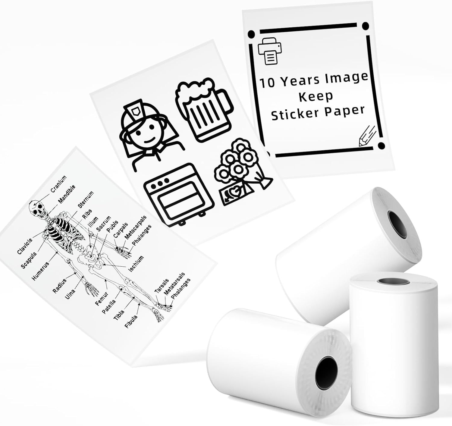 LETNERNY-Papier Thermique Transparent, 10 Rouleaux De Papier Thermique Autocollant Pour Mini Imprimante, Rouleau De Papier Autocollant Blanc, 57 X 25Mm (10 Rouleaux Papier)