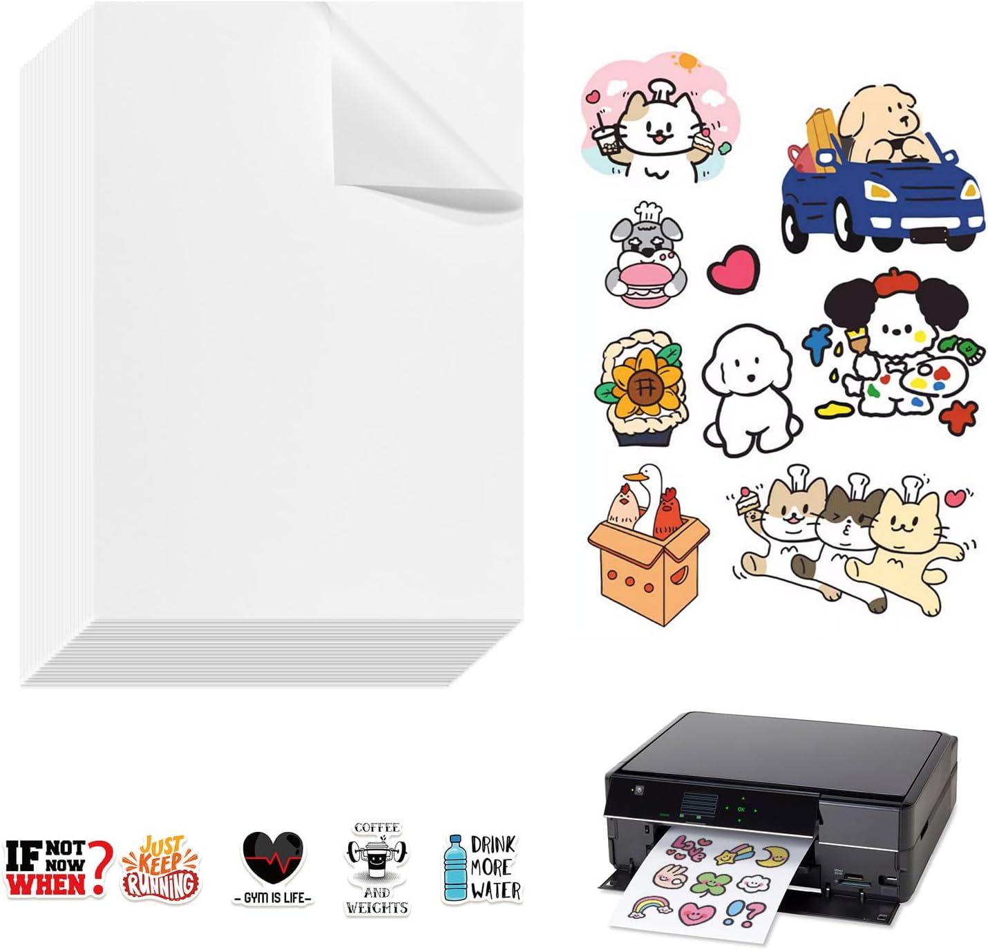 OUPP-Papier Autocollant Feuilles De Papier Autocollant 30 Feuilles Autocollant Jet D'Encre Blanc Papier Autocollant En A4 Vinyle Imprimable Pour Imprimante À Jet D'Encre Laser 21 X 29,7 Cm