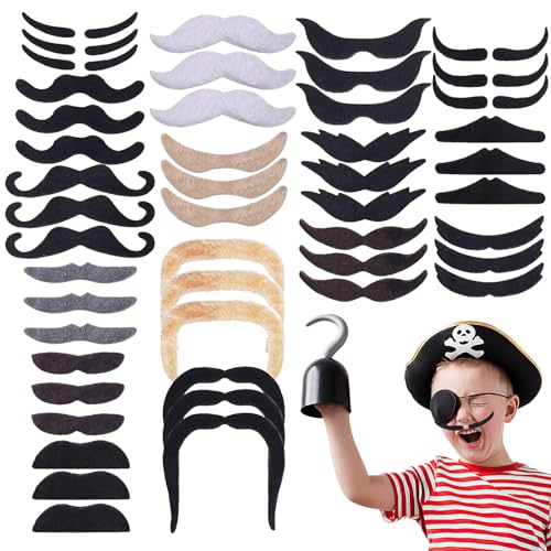 DHWEKU 48 Pièces Fausses Moustaches Nouveauté Fausses Moustaches à Papier Collant Auto pour la Fête de la Mascarade de Noël, fête d'anniversaire, déguisements 16 Styles Amusant
