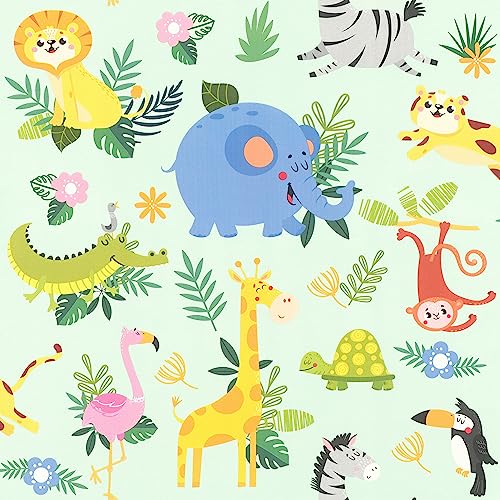 Rasch WTD 229714 Papier peint coloré pour chambre d'enfant Motif éléphant, girafe, lion, singe et autres 10,05 m x 0,53 m