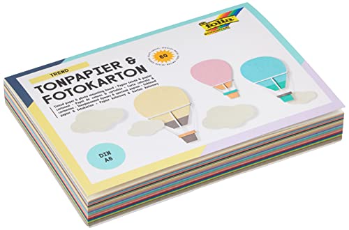 folia Trend Craft Papier coloré DIN A6 + 30 feuilles de papier cartonné photo assortis en 15 pastel, bloc pratique avec colle pour tête
