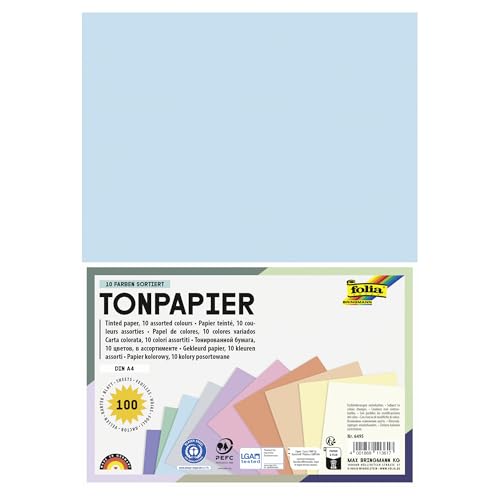 folia Lot de 100 feuilles de papier coloré pastel DIN A4 130 g/m² 10 couleurs assorties pour travaux manuels et création de cartes, de fenêtre et de scrapbooking