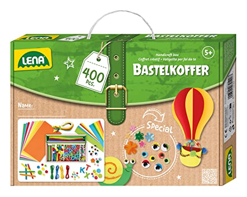 LENA 42713 - Coffret de bricolage avec 400 pièces, avec papier coloré, caoutchouc mousse, cure-pipe, yeux vacillants, pompons, bâtonnets de glace colorés, boutons et plus, dès 5 ans, Multicolore