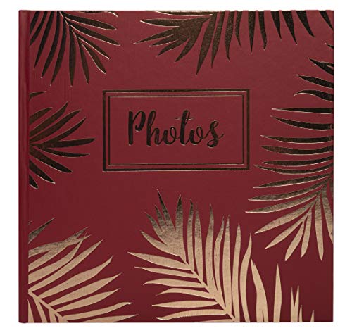 Exacompta - Réf. 16208E - Album photos Livre PALMA - 150 photos - 50 Pages Noires - Format 32x22 cm - couverture papier coloré rouge avec des effets brillants et un motif de feuilles de palmier