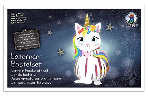 URSUS 18720014F Kit de fabrication de lanternes Kittycorn, couvercles de lanterne, fond de lanterne, papier transparent 115 g/m², 25 bandes de papier, Coloré