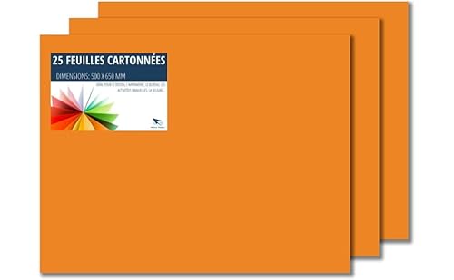 OXFORD Lot de 25 feuilles de carton à dessin - 50 x 70 cm - Format B2 - Format B2 - Papier de bricolage coloré - Pour types de travaux manuels - Papier de couleur 225 g/m² - Orange
