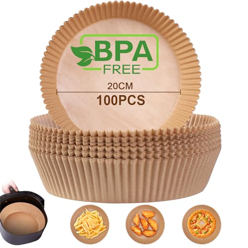 HONYAO Papier Cuisson Air Fryer 100 Pièces, 20 cm XL Rond Paper Sulfurisé pour Friteuse a Air 4-6,5 L, Airfryer Parchemin Accessoires compatible avec Cosori Philips Cecotec Friteuse Sans Huile