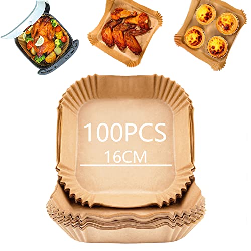 HONYAO Papier Cuisson Air Fryer 100 Pièces, 16x16cm Carré Paper Sulfurisé pour Friteuse a Air 2-4,1 L, Airfryer Parchemin Accessoires compatible avec Cosori Philips Cecotec Friteuse Sans Huile