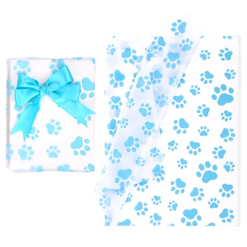 30pcs Papier de Soie Patte de Chien, 50x35cm Papier de Soie Imprimé Patte Mignonne Papier d'Emballage Cadeau pour Emballage Cadeau Fournitures de Fête d'Anniversaire de Mariage (Bleu)