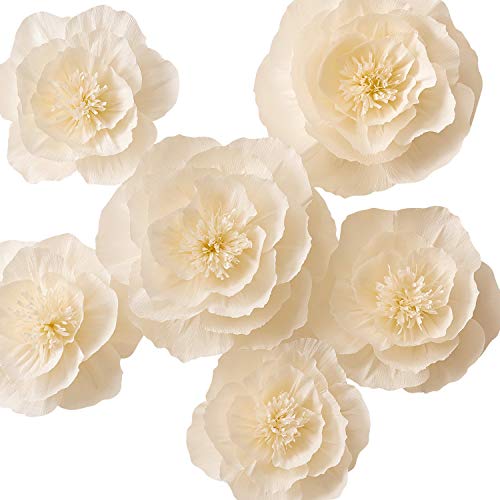 KEY SPRING Lot de 6 décorations murales géantes en papier crépon pour mur, toile de fond de mariage, décoration murale de chambre d'enfant, fête prénuptiale, fête d'anniversaire (beige, pas de montage