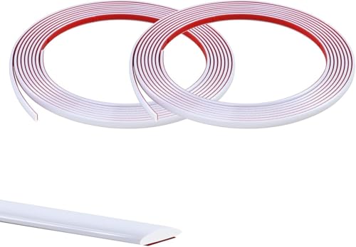 10M(5Mx 2 rouleaux) Blanc Moulure Décorative Autoadhésive Bord de Papier Peint Carrelage Miroir Mur Plafond Armoire Baguette de Finition PVC Bandes de Calfeutrage Bande Décoration Murale,13mm