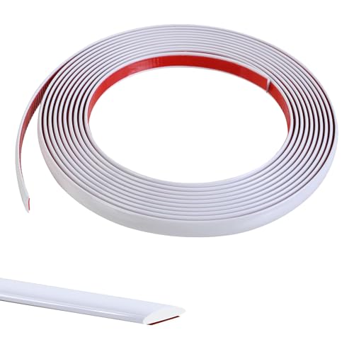 5M Moulure Décorative Autoadhésive Bord de Papier Peint Carrelage Miroir Mur Plafond Armoire Baguette de Finition PVC Bandes de Calfeutrage Bande Décoration Murale,8mm Blanc