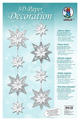 Ursus 21840099 - Décoration en Papier 3D - Motif étoiles - Argenté - pour 8 Grandes et 8 Petites étoiles - avec Instructions de Bricolage (français Non Garanti) - Idéal comme décoration de Mur, de