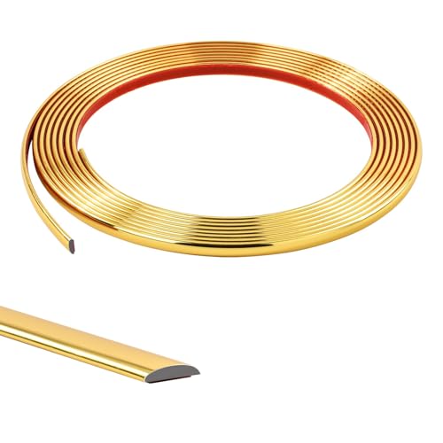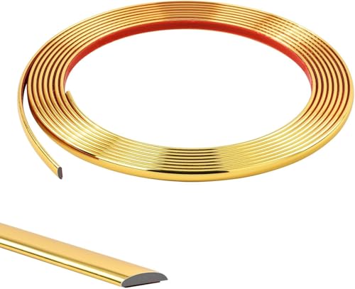 5M Moulure Décorative Autoadhésive Bord de Papier Peint Carrelage Miroir Mur Plafond Armoire Baguette de Finition PVC Bandes de Calfeutrage Bande Décoration Murale,8mm Doré