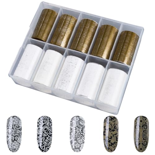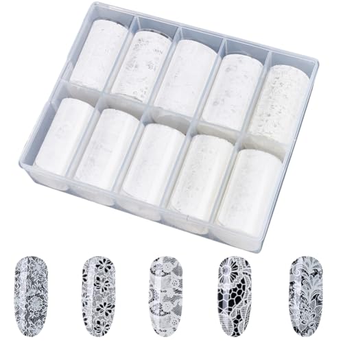 SOFPLATE 1 boîte de 10m Papier Transfert pour Ongles Dentelle Autocollant D'ongle Pet Noir Blanc Fleur Floral Holographique Artisanat Autocollant Ongles Dentelle pour Decalco Ongles Nail Art Déco