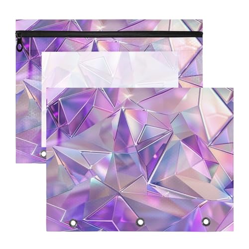 Lot de 2 trousses à crayons portables à 3 anneaux pour papier A4 - Motif holographique brillant - Motif lavande