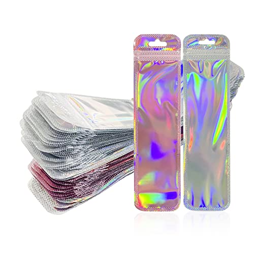 Sac de Rangement 100 Pièces - Emballage Holographique en Papier d'Aluminium, Ziplock Refermable et Thermoscellable pour le Stockage des Aliments (5,5 x 22 cm)