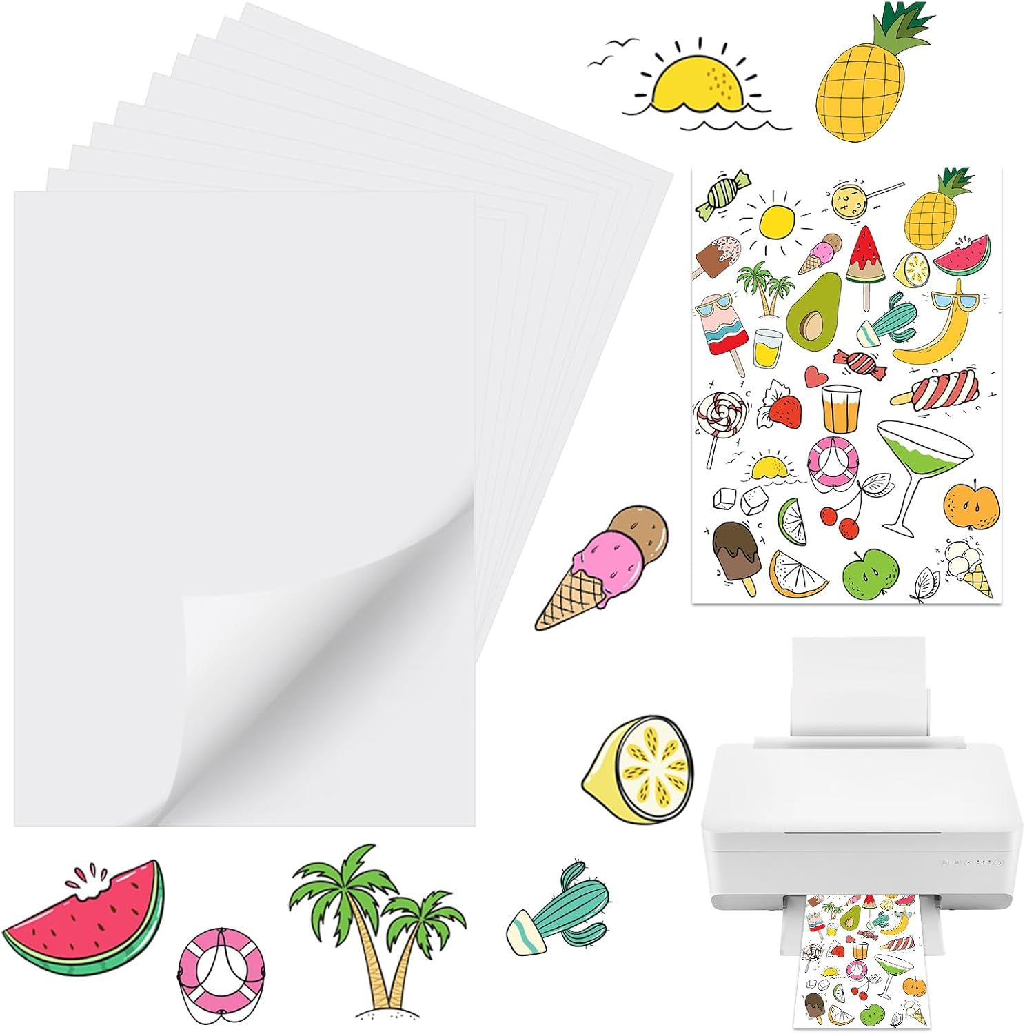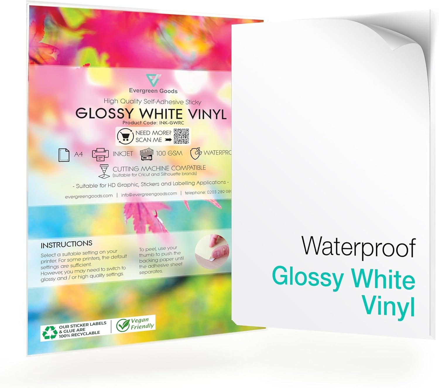 JEXNOVASHOP-Evergreen Goods 20 Feuilles De Papier Autocollant Papier Stickers Vinyle Blanc Brillant A4 Imperméable à L'eau De, Feuilles Vinyle Imprimable Convenant Aux Imprimantes à Jet D'encre Et La