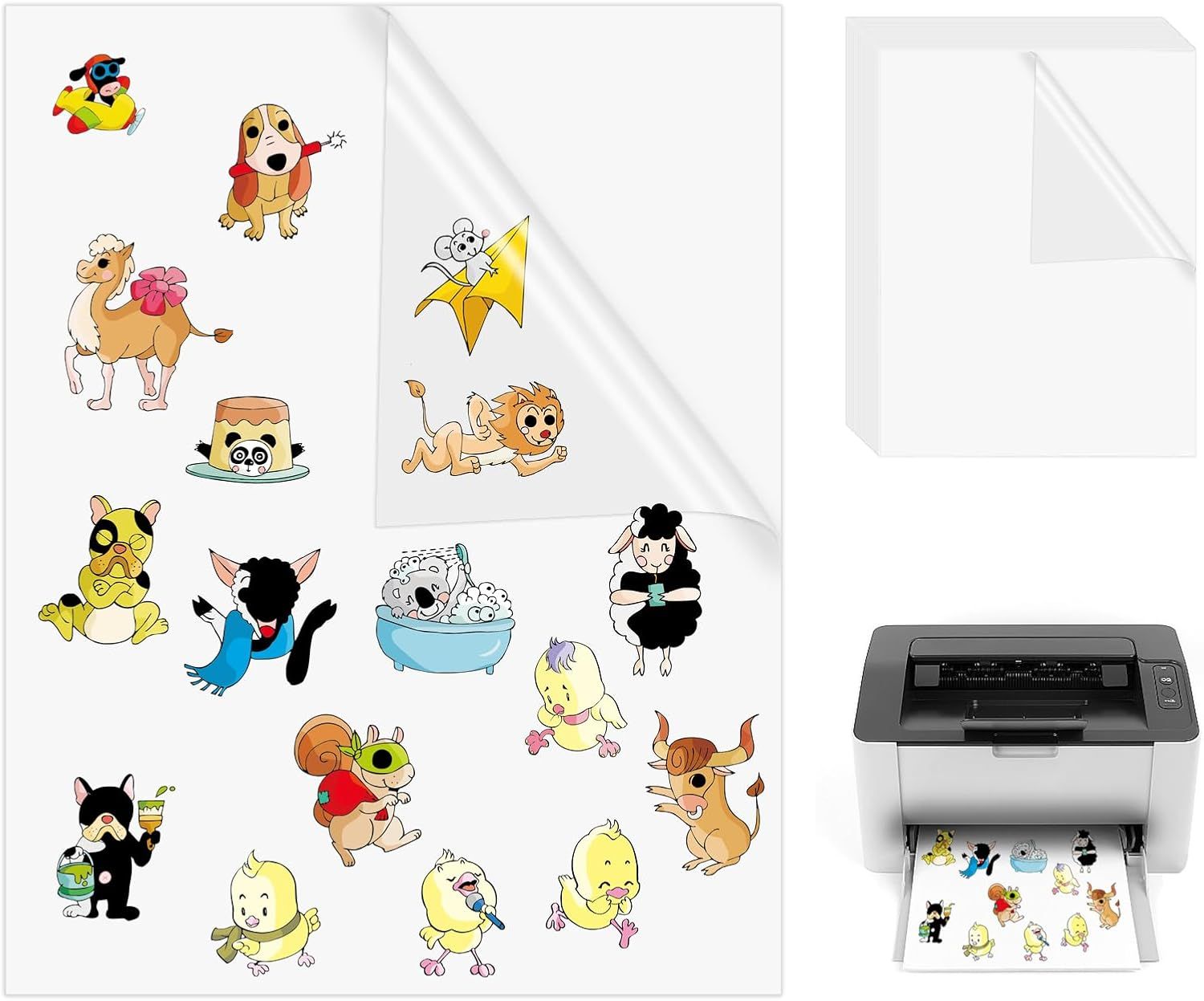 VMUTGA 30 Feuilles Papier Autocollant Imprimante, 100% Transparent Film Autocollant Vinyle A4 Auto-adhésif Papier D'impression Étiquette Adhésif Imprimable pour Imprimante à Jet d'Encre (21 x 29.7cm)