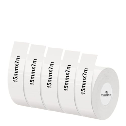 Zenfora Papier pour imprimante Thermique, Rouleau de 15mm X 7m, Compatible avec Les Rouleaux d'étiquettes P12 D30 Marklife P12 P15(5PK Transparent)