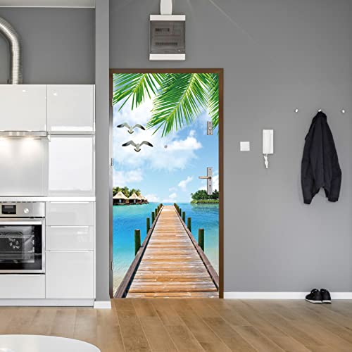 UIGFDSDF Stickers Porte Trompe l'oeil Effet 3D 83x204cm Poster de Porte Papier Peint Porte Muraux Intérieure par Autocollants Imperméable Amovible Salon Chambre Salle De Bain Cuisine, Vue sur la mer
