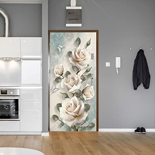 LuSeven stickers porte placard Fleur plante rose simple 95x215cm(37.4 inches * 84.64 inches) Papier Peint Porte 3D photo mural Art wallpaper colle Stickers de Porte Trompe l'oeil 3D Pour Salon Chambre