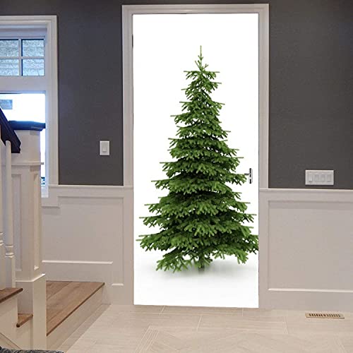 Stickers Porte Poster 3D - Sapin De Noël Vert 77 X 200 Cm Papier Peint Porte Trompe L'Oeil Pour Salon Chambre Décoration De La Maison Stickers Muraux Auto-Adhésif Stickers Amovibles - Photo De La Por