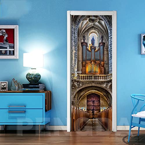 Stickers Porte 3D Trompe L'Oeil 95X215Cm Vue Sur La Cathédrale Autocollant De Porte 3D Poster Papier Peint Auto-Adhésif Imperméable Pvc Muraux Pour Chambre Salon Cuisine Décoration