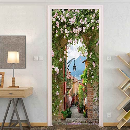 Stickers Porte Poster Allée De Fleurs Roses 95 X 210 Cm 3D Papier Peint Porte Trompe L'Oeil Pour Salon Chambre Décoration De La Maison Stickers Muraux Imperméable Stickers Amovibles Art Decor