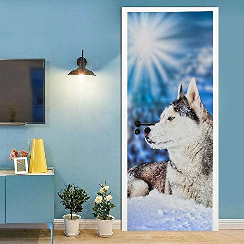 Sticker Porte Effet 3D - Autocollant De Porte Trompe L'Oeil - Loup Animal 77 X 200 Cm Papier Peint - Auto-Adhésif Stickers Muraux -Chambre Salon Cuisine Poster De Porte Déco - Photos De Porte