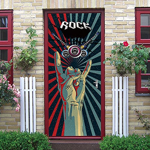 LuSeven stickers trompe loeil Geste rock 50x125cm(19.68 inches * 49.21 inches) Sticker De Porte Trompe l'oeil Effet 3D Intérieure Papier Peint Peintures Imperméable Amovible Autocollants Escaliers