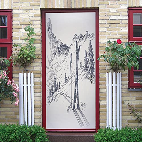LuSeven papier peint salle de bain Montagne de neige ski blanc 77x200cm(30.31 inches * 78.74 inches) Papier Peint Porte Sticker Porte Muraux 3D Intérieure Trompe L'Oeil Décoration Autocollants De Port
