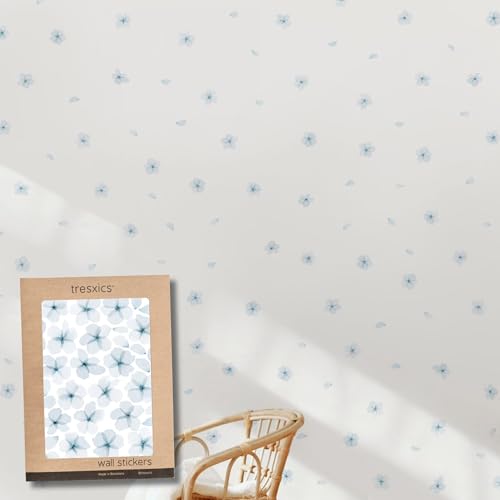 TRESXICS Stickers Muraux Salon Fleurs de Cerisier Aquarelle, 72 fleurs et 60 pétales, Décoration Chambre Original et Résistant, Effet Papier Peint Autocollant Mural, Facile et Amovible (Bleu)