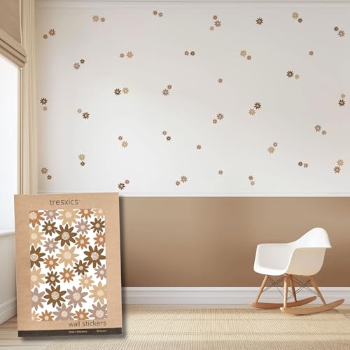 TRESXICS Stickers Muraux Salon Marguerite Fleur Aquarelle, 64 Pièces, Décoration Chambre Original et Résistant, Effet Papier Peint Autocollant Mural, Application Facile et Amovible (Marron)