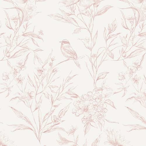 LiKiLiKi Film autocollant pour meubles - Papier peint floral beige et rose - 44 x 300 cm - Papier peint mural autocollant pour meubles, table, chambre à coucher, salon - Imperméable - Facile à couper
