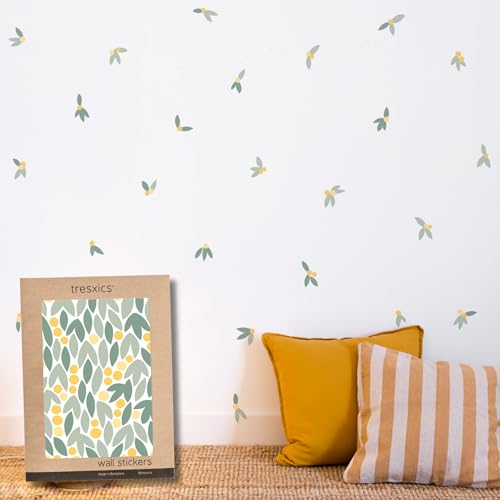 TRESXICS Stickers Muraux Salon Feuilles Aquarelle, 80 Pièces, Décoration Chambre Original et Résistant, Effet Papier Peint Autocollant Mural, Application Facile et Amovible (Jaune)