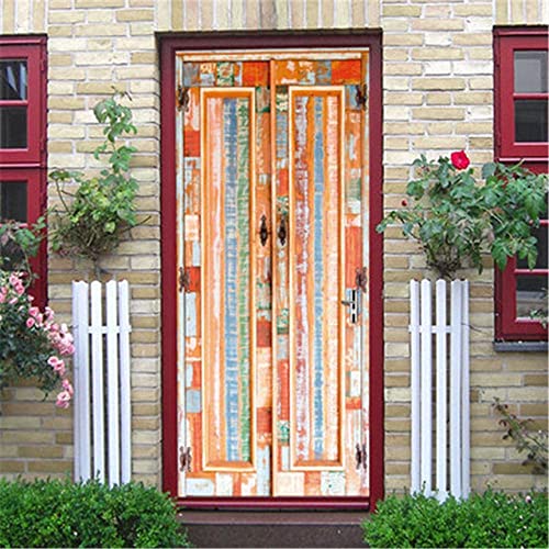 Sticker Porte Planche de Bois Vintage 3D Trompe l'Oeil - Papier Peint Autocollant de Décoration Mural pour Salon Chambre - Poster 90x210 cm a7900