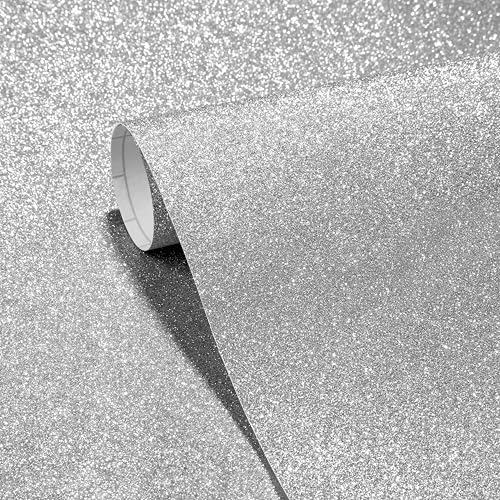 Stickyart Papier Pailleté Blanc Adhesif Pour Meuble Argenté Adhésif Pour Meuble 40cmX700cm Papier Peint Blanc Brillant Autocollant Mural En Vinyle Imperméable Stickers Amovible Chambre Coiffeuse