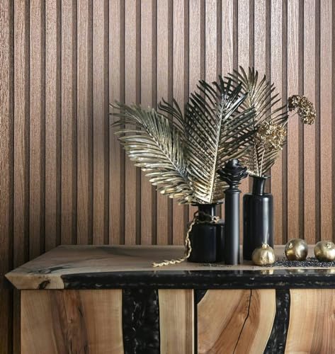 WALLCOVER Papier peint aspect bois, marron, panneaux acoustiques, effet 3D, panneaux en bois scandinave, aspect naturel, moderne, 10,05 x 0,53 m, fabriqué en Allemagne