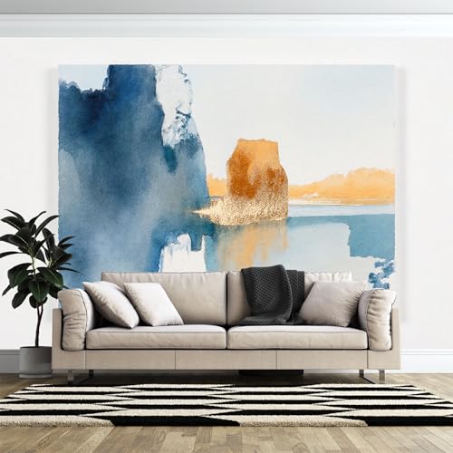 Papier peint mural imprimé en 3D de taille personnalisée, aquarelle abstrait bleu orange paysage abstrait, impression d'art (sans PVC), papier peint amovible pour décoration d'intérieur
