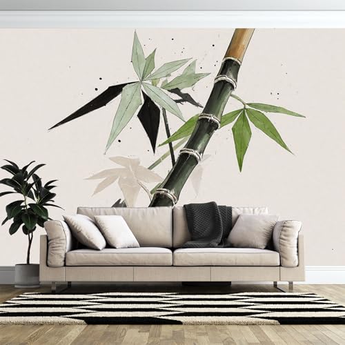 Papier peint mural imprimé en 3D de taille personnalisée, aquarelle traditionnelle d'Asie de l'Est, plante de bambou, impression artistique autocollante (sans PVC), papier peint amovible pour