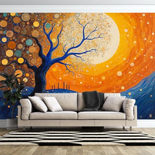 Papier peint mural imprimé en 3D de taille personnalisée, arbre surréaliste, orbes du ciel, impression artistique autocollante (sans PVC), papier peint amovible pour décoration d'intérieur