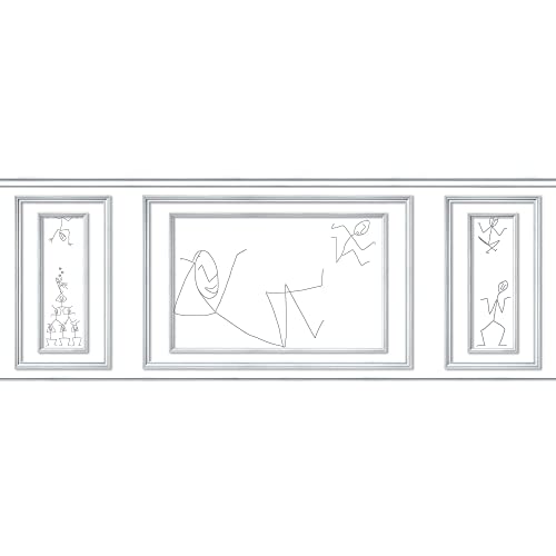 PLAGE Papier peint bois trompe l'oeil, motif personnages rigolots, 75 cm X 200 cm, soubassement panoramique boiserie.