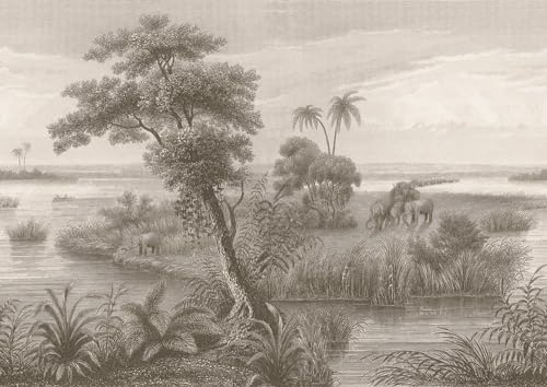 Rasch Lirico 556155 Papier peint photo non tissé avec lac et petites îles, plantes et éléphants, marron, 3 x 4,24 m (L x l)
