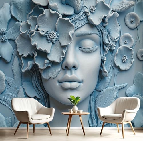 Papier Peint Soie Panoramique Moderne Femme Relief, 3D Poster XL Papier Peint Motif Esthétique Classique, Fresque Murale 250×175 cm, Décoration Murale Bleu Pour Salon Chambre Bureau Tv