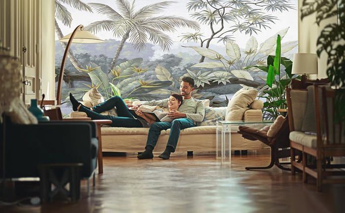 Papier Peint Jungle 3D Plante Tropicale Palmier Soie Taille Personnalisée Fresque Murale pour Salon Décoration Murale 400x280cm