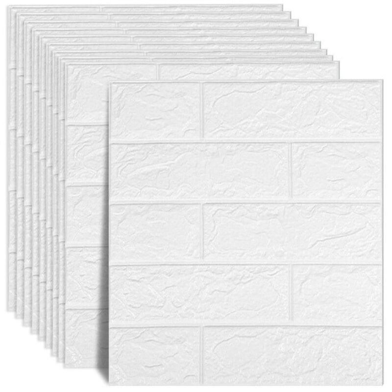 Lot de 10 Panneaux Muraux Brique 3D Adhésifs, Papier Peint Mousse Isolant Thermique et Phonique